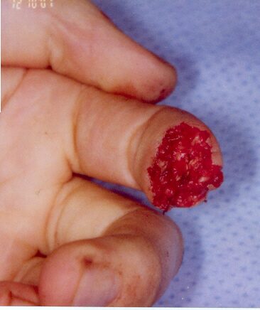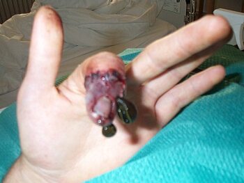 So sieht es aus wenn man mit der Kreissäge Fingernägel kürzt.... vor der Aktion am Freitag 12.10.2001: