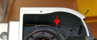 Den Mahlgradhebel durch lösen der zwei Plastiknasen mit einem kleinen Schraubendreher abheben. Am Besten ist es, wenn ihr davor die Stellung mit einem Filzstift auf der gelochten Scheibe markiert. |