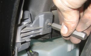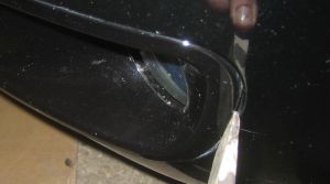 vom Nebelscheinwerfer mit Kunststoffkeil ausbauen (Keil außen ansetzen) lt. "Klema" funktioniert das auch ohne Keil, durch reindrücken der Kunststoffnase oberhalb des Nsw und gleichzeitigem Ziehen. (hab ich noch nicht versucht.) |