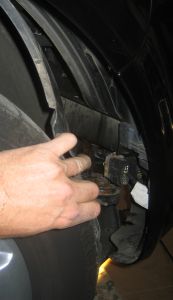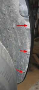 Die Abdeckung im Radlauf kann dann ein wenig nach hinten geklappt werden, um an die weiteren Schrauben zu gelangen |