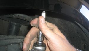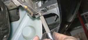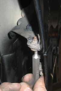 Hinterm Rad ist dann die Letzte 25er Torx im Radlauf, die noch heraus gedreht werden muss. |