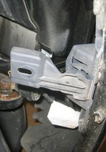 Vier 25er Torx im Schlossträger entfernen. Das erste Bild zeigt die Schraube am Hydraulikölbehälter. Von den nächsten Zwei oberhalb des Kühlers hab ich leider kein Bild, die sind aber schon ersichtlich. Passt gut auf, die Schrauben fallen ruck zuck in den hohlen Schlossträger und da kommt man sehr schlecht rein, um sie wieder heraus zu holen. |