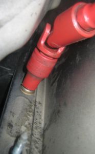 Zwei Muttern SW10 oberhalb der o.g. Schraube entfernen. |