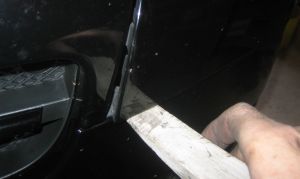 Vorsichtig mit dem Kunststoffkeil die Stoßleisten an den Ecken aus den Verrastungen lösen und abnehmen |